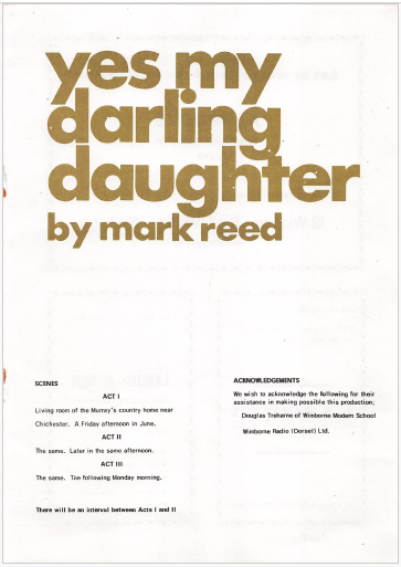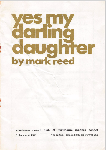 Presenting Mark Reed’s comedy drama Yes My Darling Daughter at Wimborne County Modern School last week Wimborne Drama Club gave performances which were notable for firts rate teamwork and polished acting.